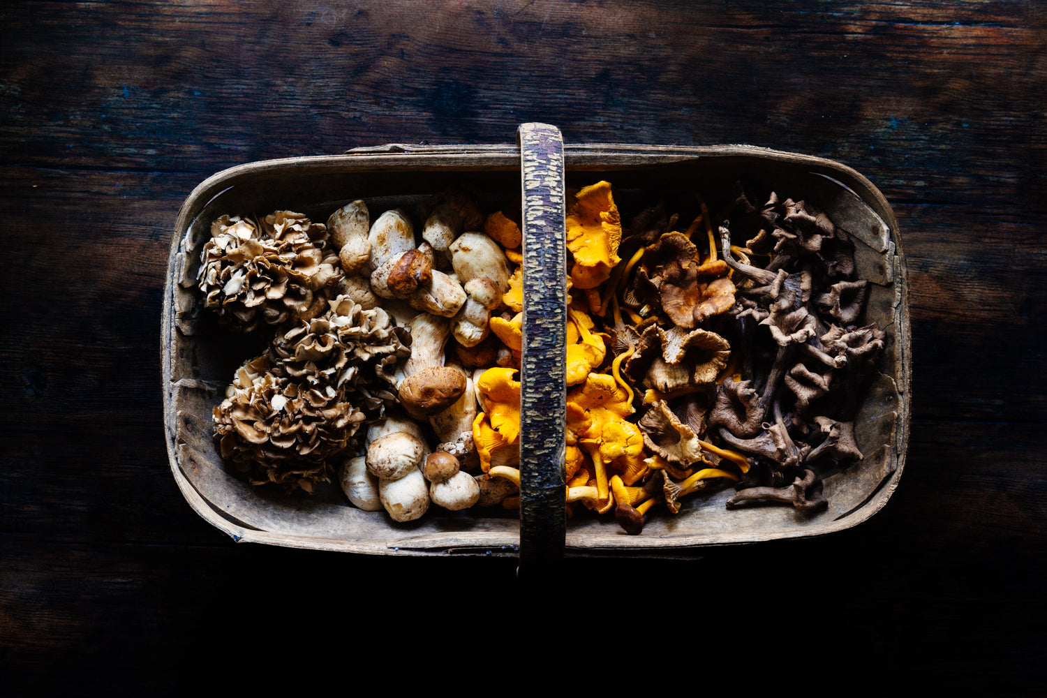 We like to make a simple fricassee with a little diced onion or shallot and garlic fried gently in butter, before adding handfuls of mushrooms in stages (ceps first, followed by the more delicate varieties) and allowing them to sauté. We add a splash of white wine, some chopped herbs and season before serving on sourdough, drizzled with the buttery juices or as a generous garnish for a simple risotto.