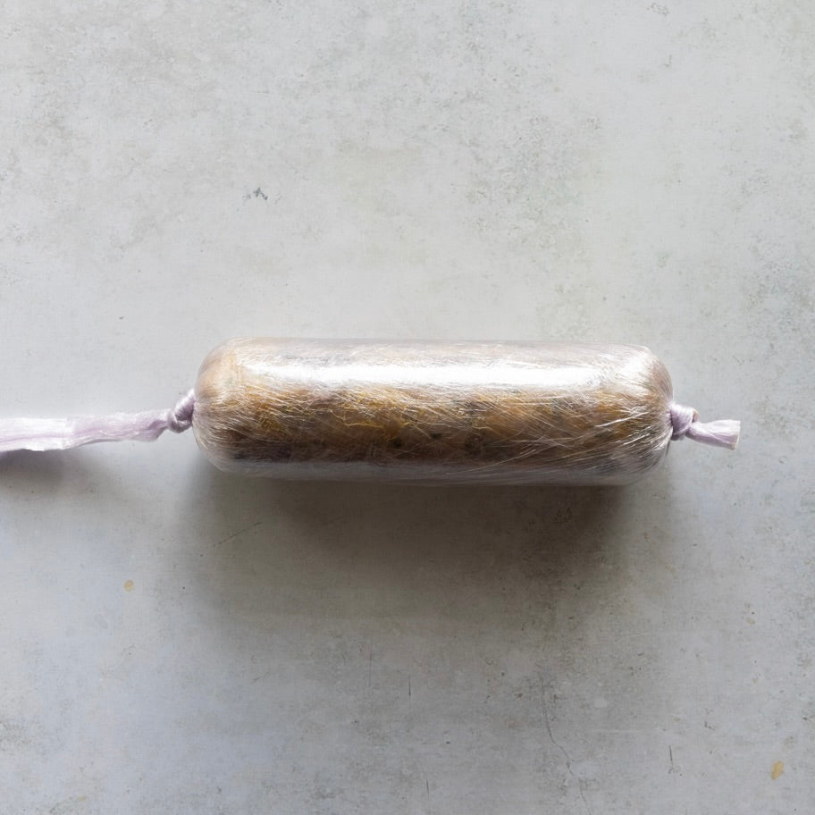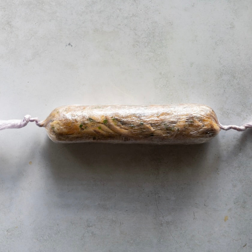 Roll again, this time focusing on creating very tight ends. Tie off one end first. For the final end, keep rolling the ballotine as you tie the knot - this helps achieve maximum tightness.