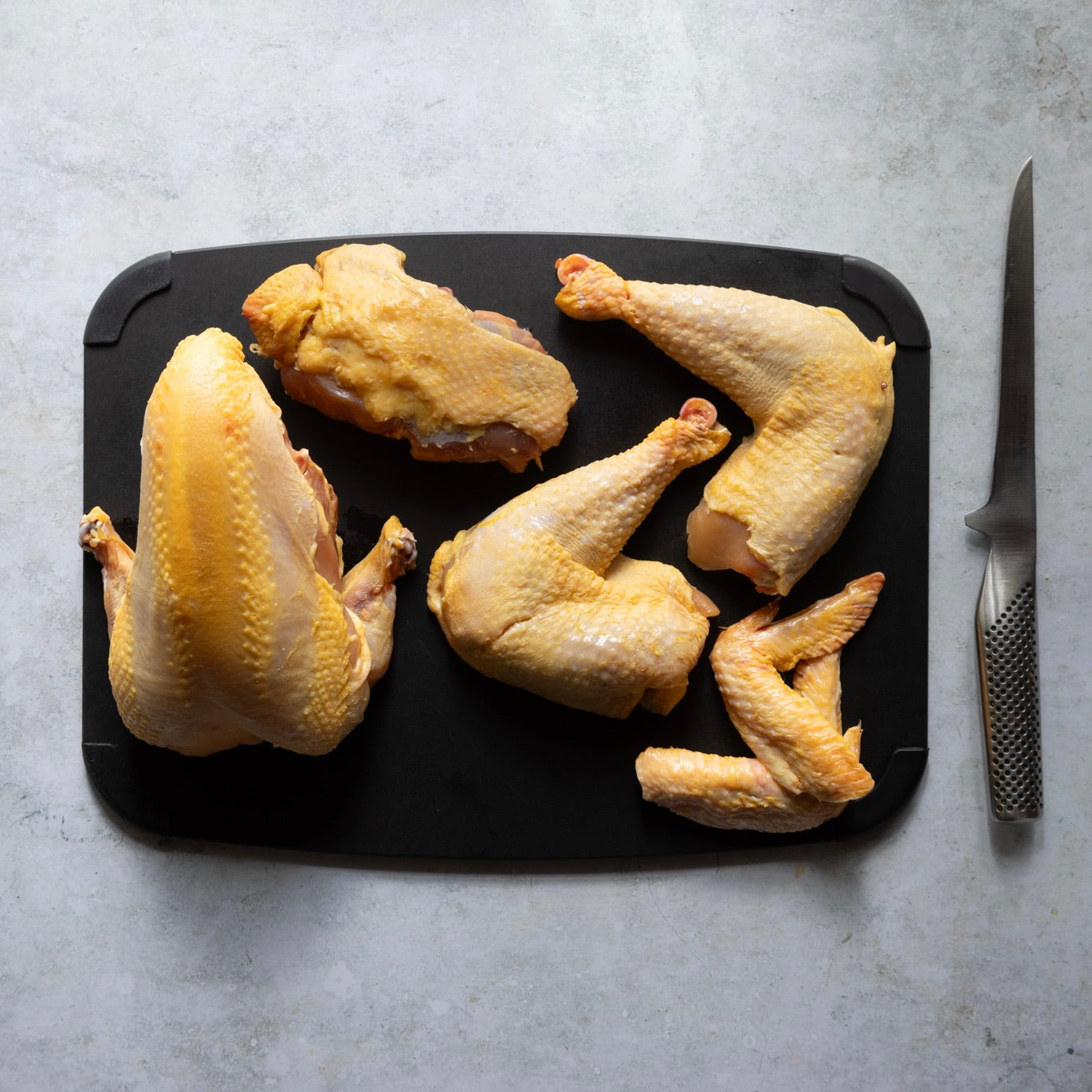 In this visual demonstration of chicken butchery, where we'll guide you through maximizing a 1.4kg bird to create a fantastic meal for four people. By breaking down a whole chicken into its component parts, you'll gain better control over cooking times and temperatures while ensuring nothing goes to waste.