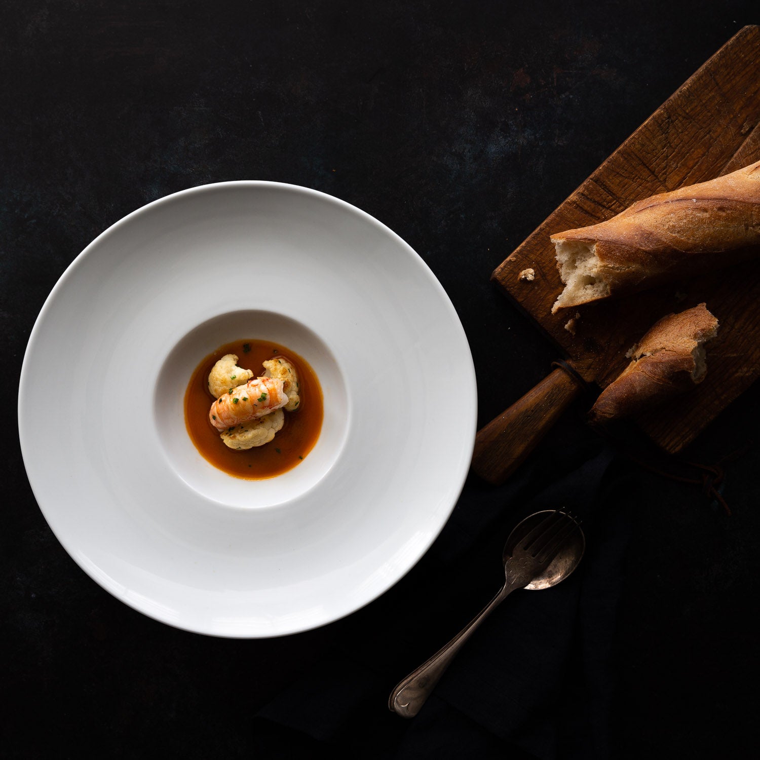This classic dish can be adapted slightly to differ between a light starter and a more substantial main course. For this light, refined starter we used 1 langoustine per person. This of course can be increased to suit. For a main course we recommend using a hand blender to blitz the whole broth (without the claws) and passing it through a sieve. For a lighter bisque or as a starter, strain the whole broth through a sieve as detailed in the recipe.