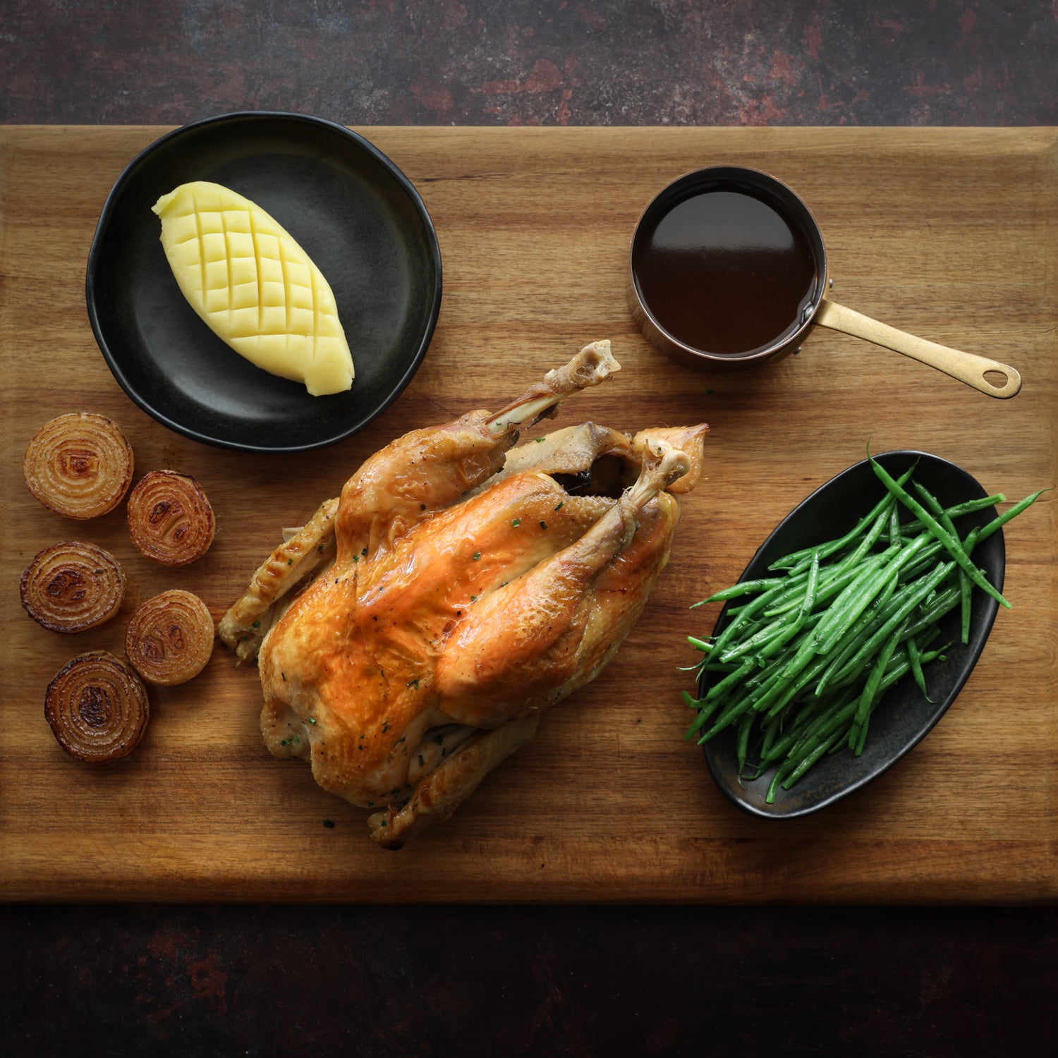 This slow cooking method allows the chicken to remain succulent while developing rich flavours from the aromatics and stock. The final blast of heat ensures a beautifully crisp skin.